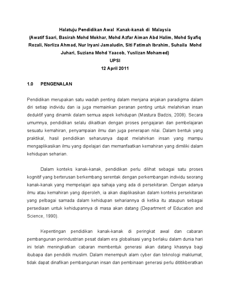 Hala Tuju Pendidikan Awal Kanak Kanak Di Malaysia Doc Document